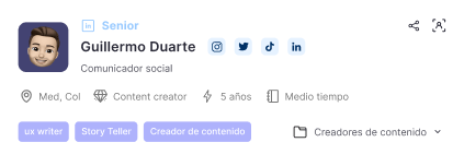 Define habilidades, descripción, responsabilidades y detalles la oferta en segundos gracias a nuestra IA. Utiliza atributos excluyentes y ajusta el algoritmo de matching para encontrar talentos afines.